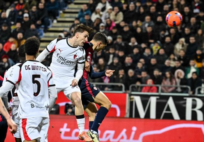 下半场刚开始不久,莱奥在禁区左侧的射门击中门框。不过,这球就算打进也没用,皮球此前已经出了底线。第50分钟,场上的僵局终于打破了!拉比奥在右侧送出横传球,被彻底放空的莱奥在禁区左侧得球,起脚劲射,球进了!AC米兰取得领先。之后,普利希奇和莫德里奇的射门都被门将化解,没能扩大比分。最终,AC米兰1-0击败卡利亚里。阿莱格里率队登顶!
