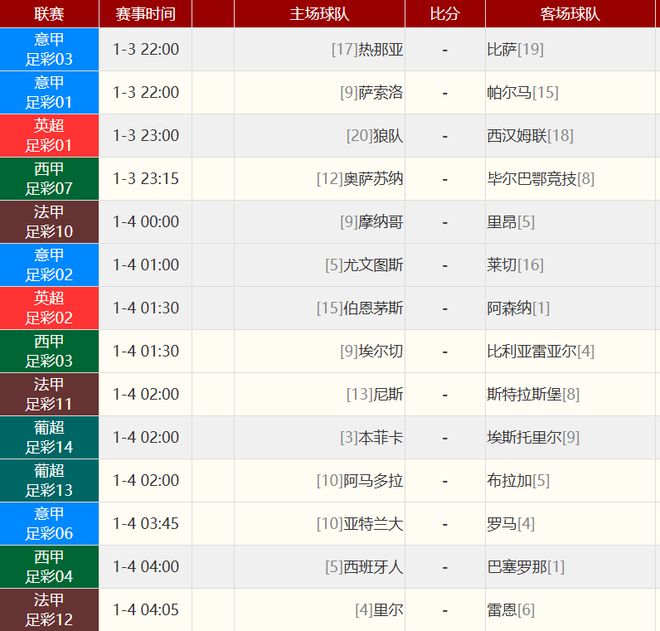 其他赛事比分: