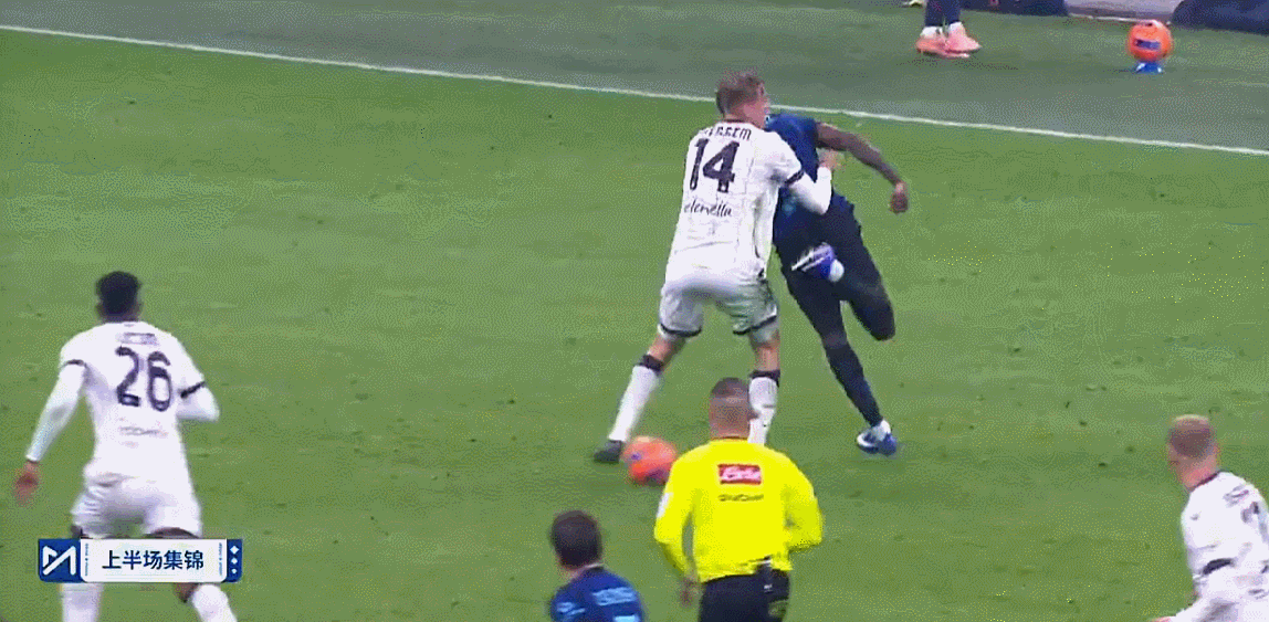 在国米攻势很盛的比赛前段,博洛尼亚队下脚凶狠,很多次出脚都是奔着“废人”而去的,圭达却选择把尺度放宽,一些本该出牌的动作,他连犯规都不吹!